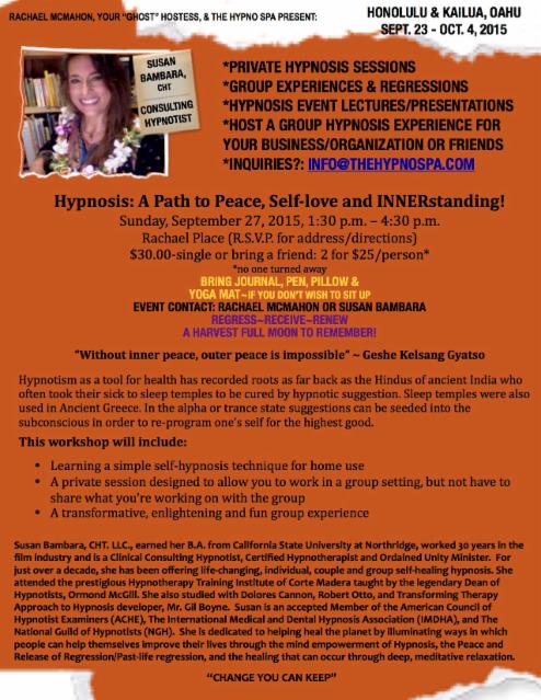 Now on the Big Island and available for Inter-Island House calls, group & individual Hypnosis, Native Visualization & Past Life regression sessions using the much celebrated Dolores Cannon Technique. Come take a life changing trip to change your mind and keep the change!